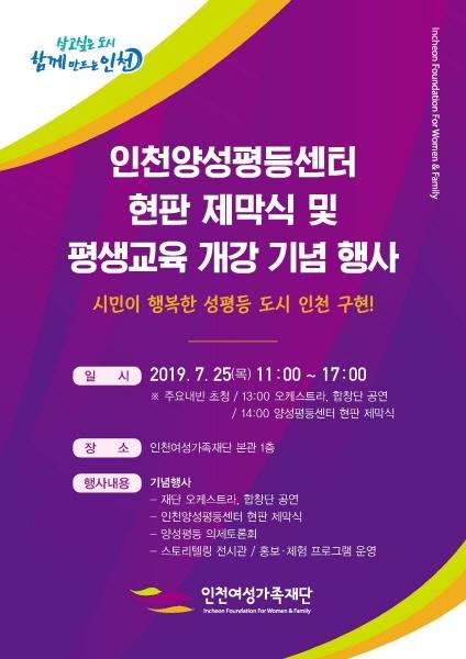인천여성가족재단은 25일 재단 본관 1층에서 인천양성평등센터 현판 제막식 및 평생교육 재개강 기념행사를 개최했다고 밝혔다.