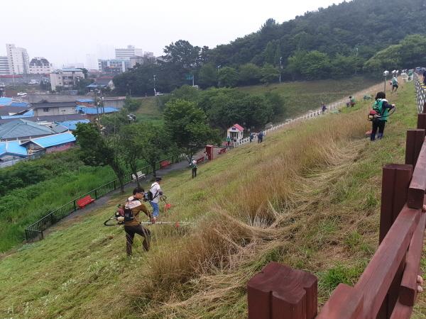 이천시 관고동새마을남녀협의회 회원들은 지난 22일 설봉호수 제방에 대한 예초작업을 실시했다.