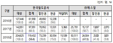 또 지연배상을 받는 사람이 철도회원이면 할인권을 자동으로 지급해 편리한 측면이 있으나 할인권 지급 사실을 모르고 유효기간 1년을 넘겨 사용하지 못하거나, 할인권 사용이 1회로 제한돼 잔액을 사용하지 못하는 문제점이 발생했다.