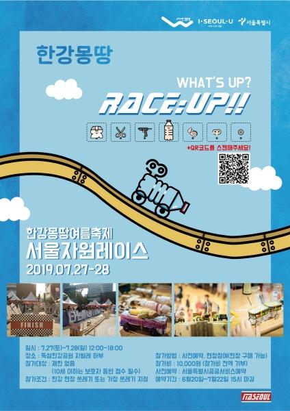 ‘서울자원레이스’는 페트병, 캔, 젓가락 등 한강에서 발생하는 일회용 쓰레기를 자원으로 삼아 무동력 소형 자동차를 제작하고, 15m 길이의 트랙에서 경주를 펼치는 프로그램이다. 7.27~28 12시~오후 6시, 총 6회에 걸쳐 뚝섬한강공원 자벌레 하부 공간 일대에서 펼쳐진다.