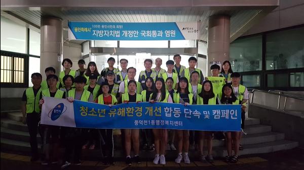 용인시 수지구 풍덕천1동은 지난 24일 여름방학을 맞아 지역 중·고생 자원봉사자들과 함께 상가밀집지역 청소년 유해환경 합동 점검을 했다.