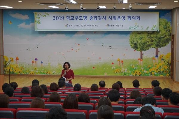 경기도교육청 학교주도형 종합감사는 외부감사반이 주도하는 적발과 처분 중심의 감사가 아닌 개선과 시정 중심의 자체 감사를 통해 학교의 적극 행정을 유도하고 문제점 시정 기회를 제공함으로써 학교 운영의 자율성과 책무성을 강화하고자 2019년부터 단계적으로 시행된다.