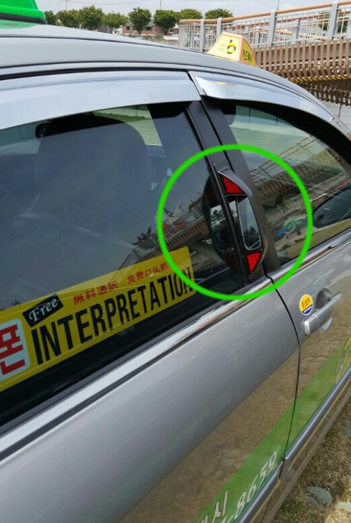 이번에 설치된 캐치미러는 뒷좌석에서 승객이 하차 시 후방의 위험대상을 확인하여 안전하게 하차할 수 있는 신개발품으로 갑작스럽게 오토바이가 나타나도 캐치미러로 승객이 확인할 수 있어 위험을 크게 감소할 수 있다.