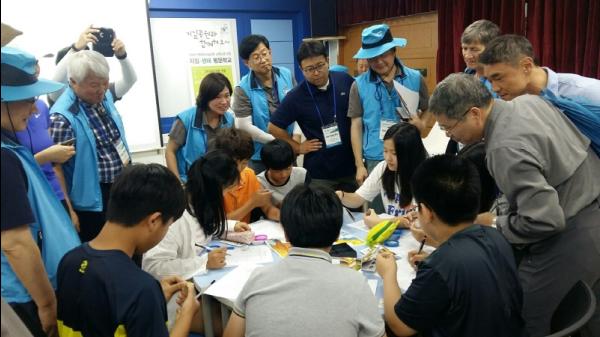 유네스코 세계지질공원 이사회 위원이며 중국 북경 지질종합대학교 교수 장 젼핑 위원과 네덜란드 혼스러그 세계지질공원의 지구과학전문가인 마가렛 뢸프 위원으로 구성된 유네스코 세계지질공원 심사단은 교육활동에 관한 평가를 위하여 관내 지오스쿨 협력학교인 연천초등학교 6학년 학생들의 지질교육 현장심사를 마쳤다.