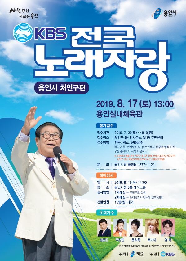 용인시 처인구는 오는 8월17일 오후1시 처인구 마평동 용인실내체육관에서 ‘KBS 전국노래자랑-용인시 처인구편’ 공개녹화를 한다고 밝혔다.