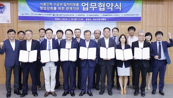 협약식에는 국가식품클러스터지원센터, 고용노동부 익산고용지청, 원광대학교, 원광보건대학교, 한국폴리텍대학 익산캠퍼스, 익산여성새로일하기센터 등 관내 인력양성기관과 인력공급기관이 참여했다.