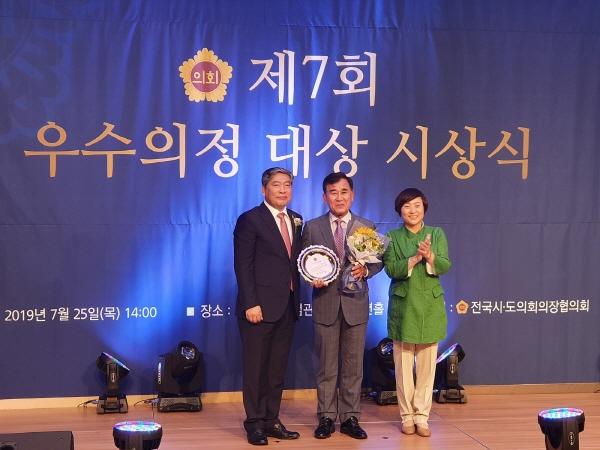 일곱 번째를 맞는‘우수의정 대상’은 지방자치 의정발전과 지역주민의 삶의 질을 높이기 위하여 노력하고 지역의정활동에 우수한 업적을 남긴 공로를 인정받은 의원에게 수여하는 상으로 시상식은 백범김구기념관 컨벤션홀에서 진행됐다.