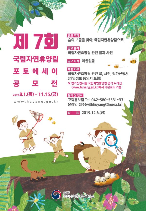 산림청 국립자연휴양림관리소는 ‘숲의 보물을 찾아, 국립자연휴양림으로’라는 주제로 제7회 포토에세이 공모전을 개최한다고 25일 밝혔다.