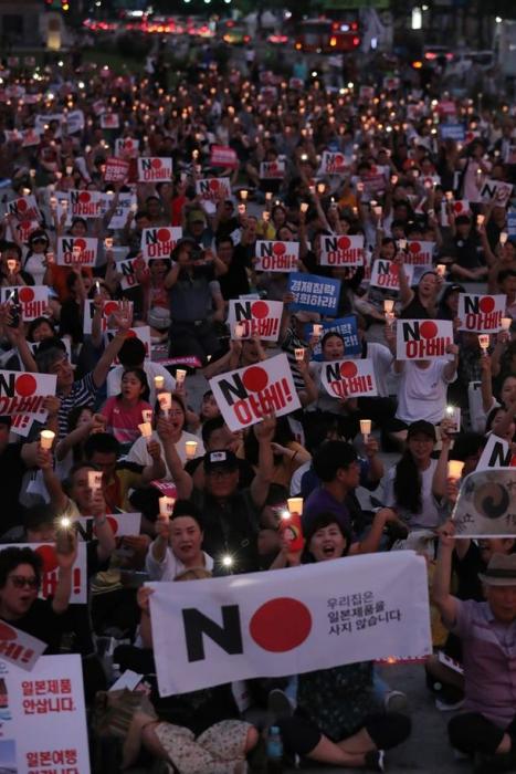 ‘GSOMIA(한일군사정보보호협정) 폐기하라’, ‘강제징용 사죄하라’, ‘(일본제품) 사지 않습니다 (일본여행) 가지 않습니다’, ‘독립운동은 못해도 불매운동은 한다’ 등의 각종 피켓과 현수막을 든 시민들이 광장에 모여들었다. 해가 진 뒤에는 일본 국기와 ‘NO’를 합성한 스티커가 붙은 촛불이 물결을 이뤘다.