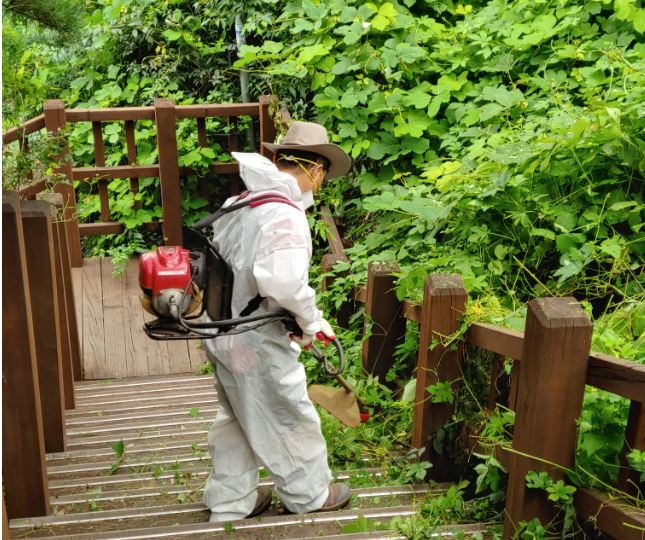 대이자율방범대원 10여 명은 27일 지역에 소재한 대잠근린공원 산책로 잡초제거 및 환경정화 활동을 벌였다.