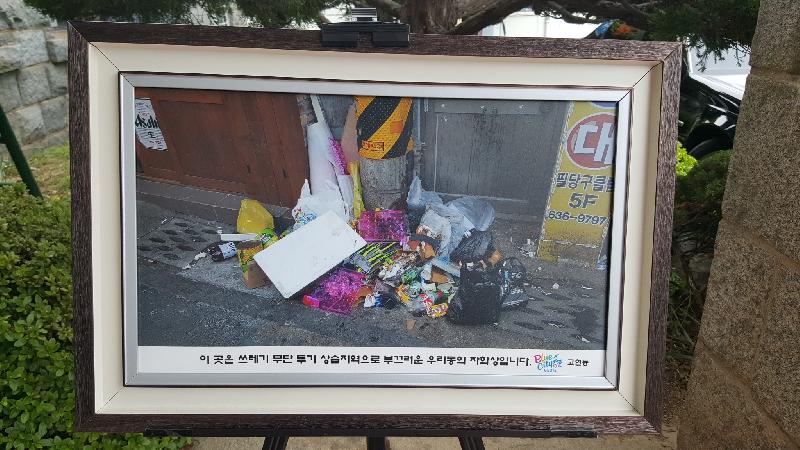 쓰레기 배출 시간 위반, 무단 쓰레기 투기 지역, 종량제봉투 미사용 등 위법하게 배출된 사진을 전시하여 거제의 대표 관문인 고현동의 이면을 되돌아봄으로써, 쓰레기 불법 투기에 대한 경각심을 일깨우는 중요한 계기가 될 것으로 기대하고 있다.