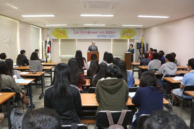 안양시자원봉사센터가 운영하는 ‘안양 틴볼 프로듀서 꿈의학교’는 청소년들이 다양한 영역의 봉사활동 프로그램을 스스로 기획‧운영하여 주도적인 봉사활동을 실천하는 학교로 안양 지역 고등학생 50명이 참여하고 12월까지 운영된다.