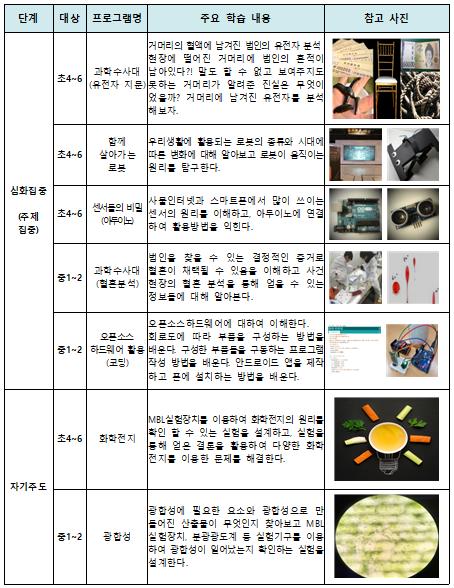 영재 학생들이 참여함에 따라 이번 교육과정은 자기주도 실험실습, 과학자와의 만남, 선배 과학고 학생 멘토링 등으로 편성됐다.