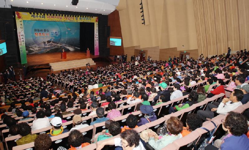 제44회 어버이날 기념 행사가 지난6일 문화예술회관에서 이강덕 포항시장, 이칠구 시의회 의장, 김정재 국회의원 당선자, 황보기 노인지회장, 도의원, 시의원 등을 비롯해 어르신 1,500여명이 참석한 가운데 성황리에 열렸다. 포항시가 주최하고 포항청년회의소(회장 박성민)가 주관한 이날 행사에서 청년회의소 회원들이 어르신 1,500여명에게 행사장 입구에서 카네이션을 달아드리며 어버이날 행사 분위기를 한층 고조 시켰다. 이날 기념사를 시작으로 효행자 표창, 효편지 낭독, 카네이션 달아 드리기가 진행됐으며, 리조이스 소년소녀 합창단과 내빈, 청년회의소 회원들이 ‘어머니의 마음’을 합창했다. 또 청년회의소 회원들이 무연고 어르신 7명에게 건강하게 오래 오래 사시라며 건강식품을 전달해 어르신들이 눈시울을 붉히기도 했다. 특히 초청가수 공연을 비롯해 요요예술단의 라인댄스, 무지개 어린이집 친구들의 덩기덕 쿵덕쿵 공연과 꼭두각시 춤 등으로 어르신들의 마음을 흥겹게 했다. 이밖에 부대행사로 할매.할배의 날 홍보 100세시대를 맞이해 어르신들이 건강하고 활기차게 노후를 보낼 수 있도록 어르신 치매 조기검사, 내 혈관알아보기 검사, 노인학대 예방 신고 및 홍보 부스를 운영해 어르신들에게 인기를 얻었다 또 포항시니어 및 노인일자리 창출지원센터에서 어르신 직업 상담.알선, 노인 생산제품 시음과 홍보, 어르신 손마사지 봉사를, 남구 이.미용 협회에서는 어르신 머리 손질 등의 다양한 체험행사도 진행됐다. 이와함께 오는 23일에는 초청가수 공연과 어르신들의 노래 및 장기를 발휘할 수 있는 어르신 노래자랑대회의 흥겨운 한마당이 문화예술회관에서 열릴 예정이다. 이강덕 포항시장은 “효 는 자식이 부모에게 대하는 공경의 마음으로 동서고금을 막론하고 존재하는 것이며 도덕규범의 기초로 사회를 인간답게 하는 가장 기본으로써 부모님의 존재와 은혜에 감사하는 마음을 실천하면 그곳에 아름다움이 있을 것”이라고 말했다// 심후보 기자 sky626201@naver.com