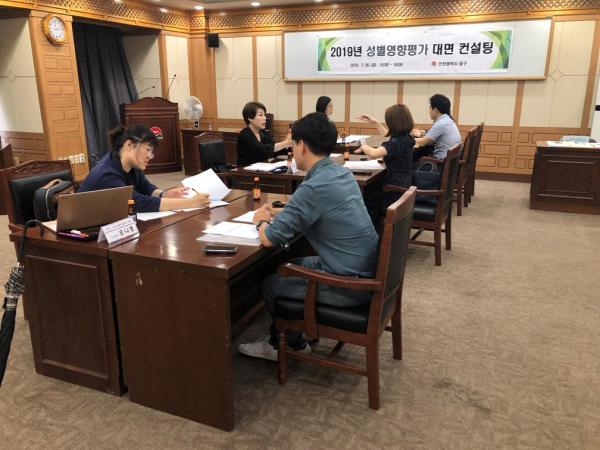 성별영향평가 대면컨설팅은 성별영향평가 대상 사업에 대한 사업담당자의 성별영향평가서에 대한 이해를 도와 성별영향평가 사업의 내실화를 기하여 성별영향평가 체계를 재확립하고 성평등 실현을 도모하고자 진행됐다.