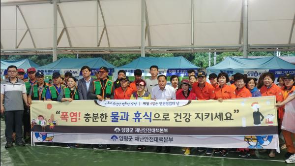 이번 캠페인에는 정동균 양평군수를 비롯해 양평 소방서, 양평 경찰서, 양평군 의용소방대, 자율방재단, 양평군 재난통신지원단, 안전모니터봉사단, 바르게살기양평군협의회, 양평군 자원봉사센터, 안전보안관, 양평공사, 전기안전공사 북동부지사 등 140여 명이 참여하여 여름철 물놀이 사고예방 캠페인 여름철 자연재난 대비요령 홍보 4대 불법 주·정차 금지제도 및 주민신고제 홍보 등을 실시했다.