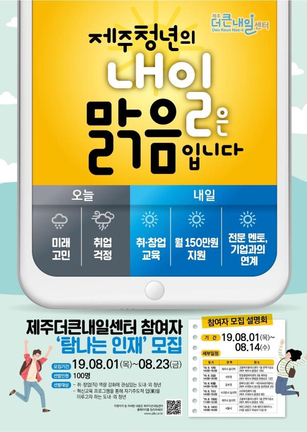 오는 9월 24일 정식 출범을 앞둔 ‘제주더큰내일센터’가 오는 8월 1일부터 100명의 참여자를 모집하며 본격운영에 시동을 건다.