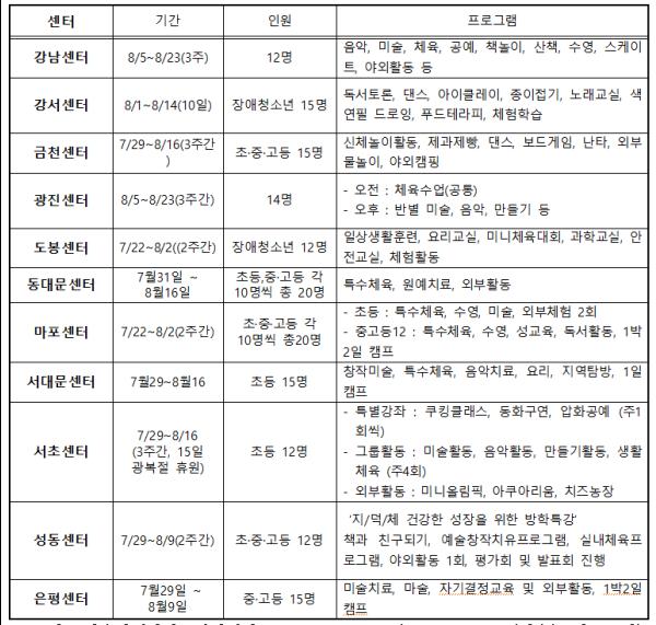 서울시는 여름방학을 맞아 특수학교 및 일반학교 특수학급에 재학 중인 서울시 장애아동·청소년을 대상으로 한 ‘여름방학 돌봄서비스’를 오는 7월 말부터 8월 중순까지 운영한다.