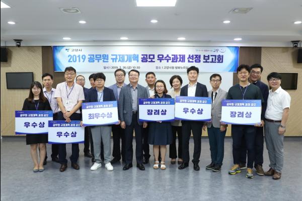 고양시는 공무원 대상 규제개혁 공모에서 채택된 7건의 과제를 대상으로 지난 26일, 시청 평화누리실에서 우수과제 선정 보고회를 개최했다.