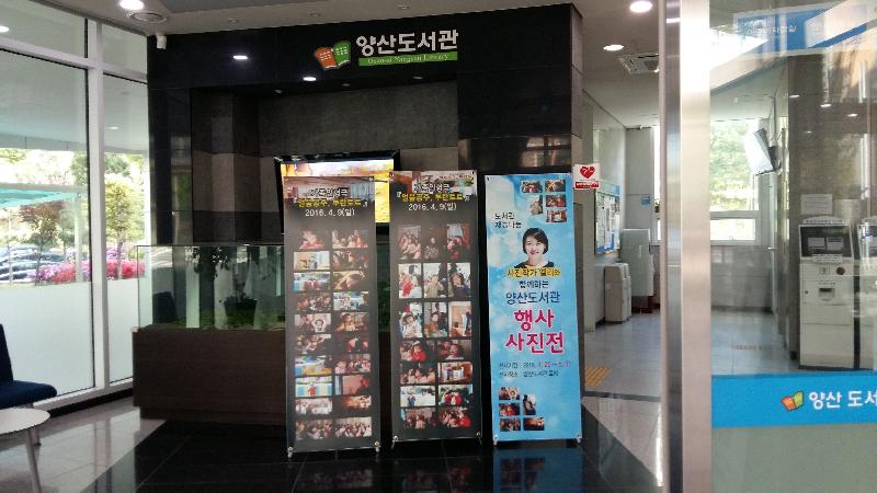 현재 양산도서관 1층 로비에서 4월 9일 공연한 가족인형극 「얼음공주, 투란도트」현장스케치 행사사진 전시회가 5월 15일까지 전시된다.