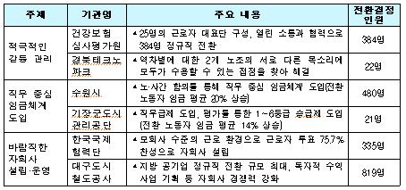 이번 사례집에 수록된 4개 주제는 적극적인 갈등 관리를 통한 정규직 전환, 직무 중심 임금체계 도입·안착, 바람직한 자회사 설립·운영, 공정한 전환과 체계적인 인사 관리이며, 총 15개 기관의 사례를 수록했다.