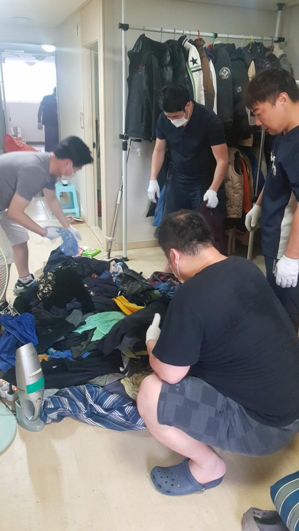 고양시 덕양구 흥도동 복지일촌협의체 봉사자들은 지난 28일 흥도동 관내 저장강박 위기가구 어르신에게 깨끗하고 안전한 주거환경을 제공하는 봉사에 나섰다.