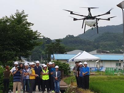 드론을 활용해 방제를 실시할 경우 기존 농법 대비 80% 이상의 노동력이 절감되고, 농지 3천 평에 대한 농약 살포시간이 10분 정도에 불과할 뿐만 아니라 농약중독 예방효과도 높일 수 있다.