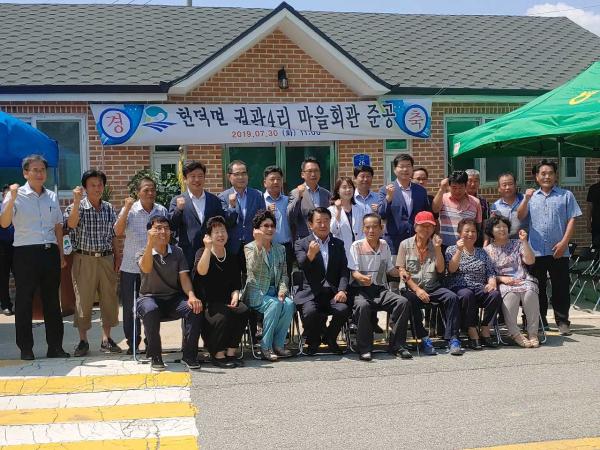 평택시 현덕면은 30일 백운기 안중출장소장, 권영화 시의장, 유의동 국회의원, 김영해 도의원, 강정구·이종한 시의원 등 기관·단체장과 지역주민 70여명이 참석한 가운데 현덕면 권관4리 주민들의 오랜 숙원이었던 마을회관 준공식을 가졌다.