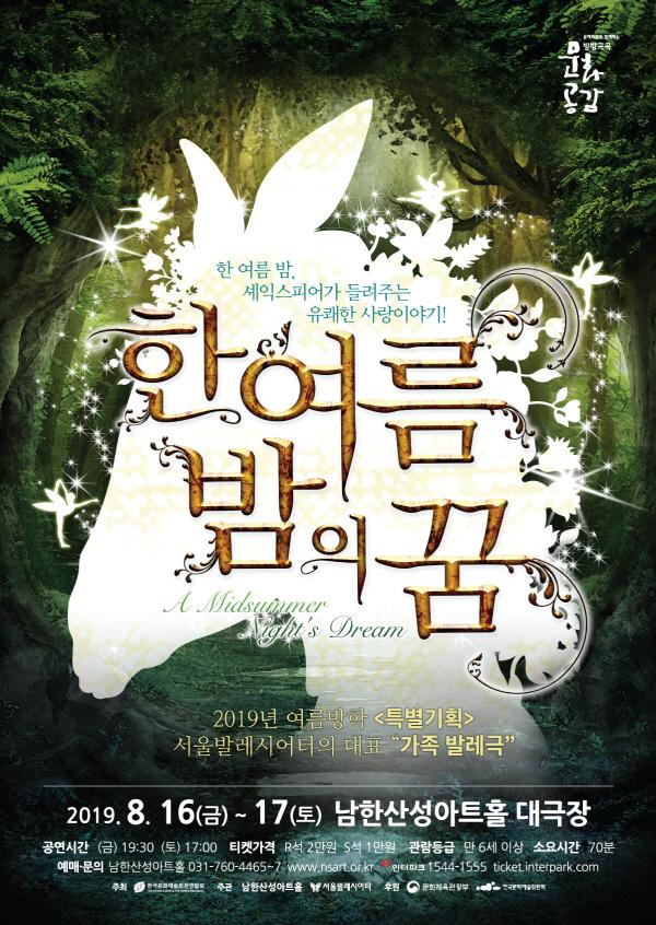 본격적인 여름 방학시즌을 맞아 아이들은 물론 전 세대가 어울려 볼 수 있는 공연으로 준비된 서울발레시어터 가족발레극 대표 레퍼토리 ‘한여름 밤의 꿈’은 셰익스피어의 대표적인 희곡 ‘한여름 밤의 꿈’을 원작으로 숲 속 요정의 실수로 엇갈려버린 연인들이 다시 사랑을 찾아가는 과정을 발레로 그려낸 작품이다.