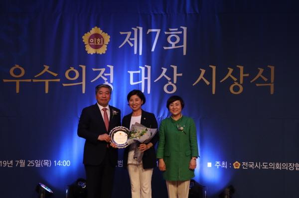 경기도의회 제2교육위원회 김미숙 의원이 지난 25일, 백범김구기념관에서 열린 제7회 우수의정대상 시상식에서 우수의정대상 수상의 영예를 안았다. 올해로 제7회째를 맞이한 전국시도의회의장협의회에서 주관하는 우수의정대상은 의정활동이 우수한 지방의원을 대상으로 수여하는 권위 있는 상이다.