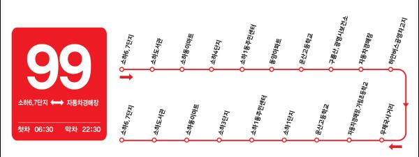 99번 노선은 신설 노선으로 소하6·7단지를 기점으로 소하도서관, 이마트 소하점, 소하1동주민센터, 보건소를 경유하여 자동차경매장 종점까지 가는 노선으로 배차간격은 20분이며, 2대가 운행된다.