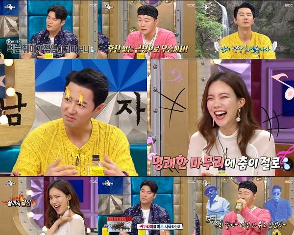 31일 방송된 고품격 토크쇼 MBC ‘라디오스타’는 ‘후진은 없다’ 특집으로 연예계 대표 ‘후진 불가’ 연예인 전진을 비롯해 래퍼에서 ‘맛집 공유왕’으로 거듭난 최자, 랩만 잘 하는 줄 알았는데 반전 노래 실력 뽐낸 래퍼 행주, ‘개로트 가수’로 변신한 김나희가 출연해 4인 4색의 매력을 자랑했다.
