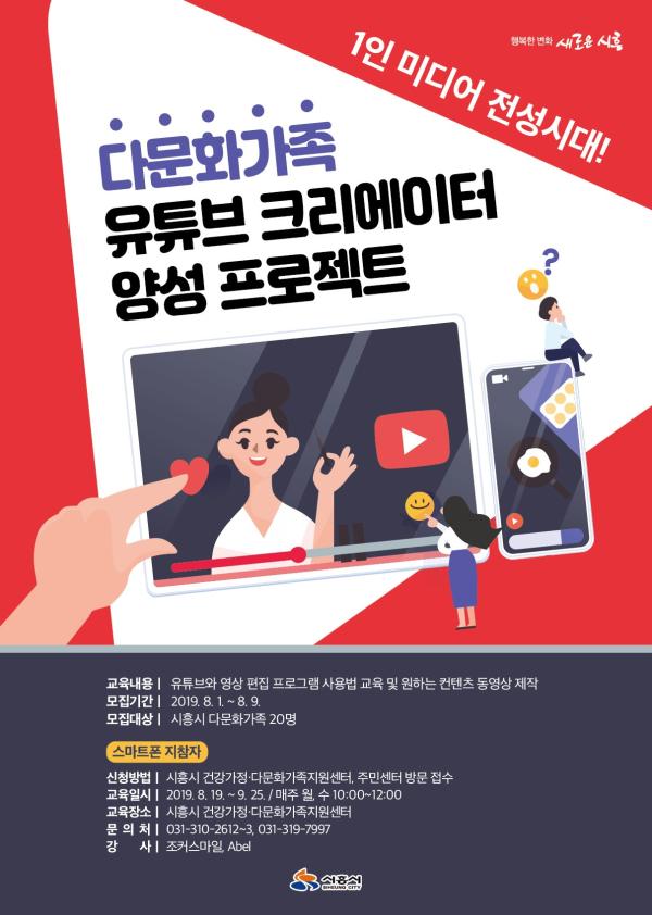 시흥시는 다문화가족의 정보격차를 해소하고 다문화가족을 경쟁력있는 지역사회의 일원으로 육성하고자 ‘다문화가족 유튜브 크리에이터 양성 프로젝트’를 진행한다.