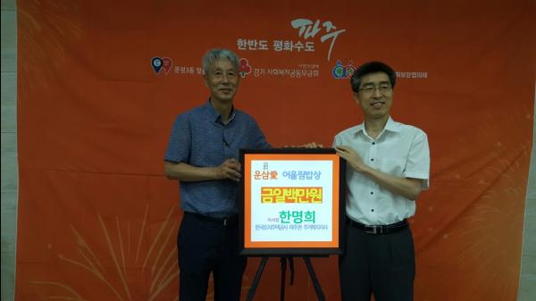 파주시 운정3동 행정복지센터는 지난 7월 31일 권영세 지역사회보장협의체 민간위원장, 한명희 LH 파주권주거복지지사장 등 관계자가 참석한 가운데 어울림밥상 후원 기탁식을 진행했다.