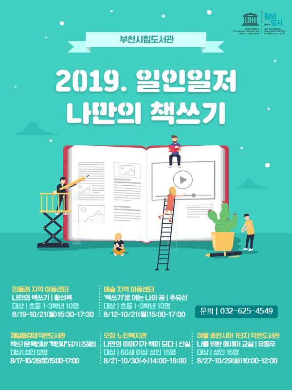 부천시는 유네스코 문학창의도시 사업의 일환으로 2017년부터 일인일저 책 쓰기 지도자를 양성하고 있으며, 올해 상반기에는 관내 중학교 8개교에서 책 쓰기 프로그램을 진행해 청소년들의 창의성을 높이고 미래 창의인재 성장을 지원하고 있다.
