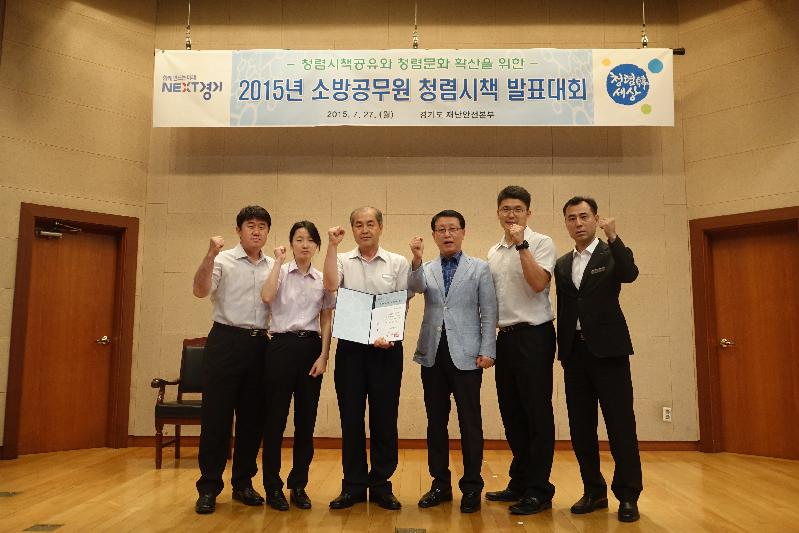 광명소방서(서장 김권운)가 27일 수원시 민방위교육장에서 열린 2015. 소방공무원 청렴시책 발표대회에서 우수상을 수상했다.