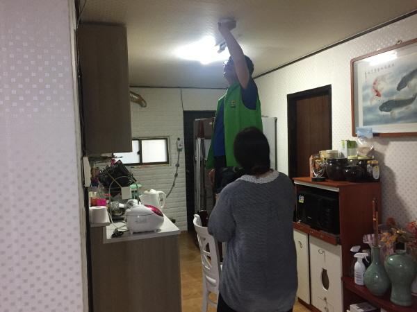 이날은 할당된 30가구 중 12가구를 방문하여 감지기를 천장에 부착 후 작동 확인하고, 소화기를 설치하면서 어르신들에게 사용방법을 설명했다.
