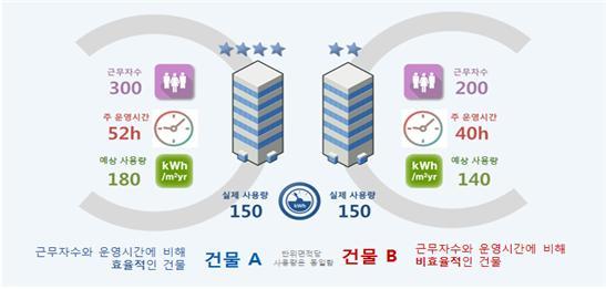 ‘온라인 에너지 효율관리 서비스란’ 사업에서 제공하는 온라인 에너지 효율관리 서비스는 신청한 건물과 다른 건물과의 에너지 운영효율 비교 분석 프로그램을 통해 건물의 규모나 사용인원, 운영시간, 장비·설비 등에 비해 에너지사용량이 과하지는 않은지 정보를 제공하여, 신청한 건축물의 에너지효율 수준과 개선 필요성을 파악할 수 있도록 도와준다.