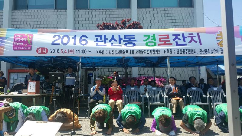 고양시(시장 최성) 덕양구 관산동은 지난 4일 주민센터 내 주차광장에서 제44회 어버이날 기념으로 관내 어르신 1,000여명을 모시고 새마을부녀회와 새마을지도자협의회 주관, 직능단체 및 일우회가 후원으로 경로잔치를 개최했다고 밝혔다.