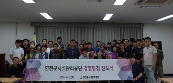 연천군시설관리공단은 1일 전 임직원이 참석한 가운데 한탄강관광지 세미나실에서 제8대 김응연 이사장의 경영방침 선포식을 개최했다.