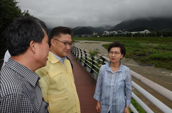 이화순 경기도 행정2부지사는 갑작스러운 폭우로 공사차량이 고립됐던 동두천 신천 하천 정비사업 현장을 1일 오전 찾아 상황보고를 받고, 신속한 수습을 지시했다.