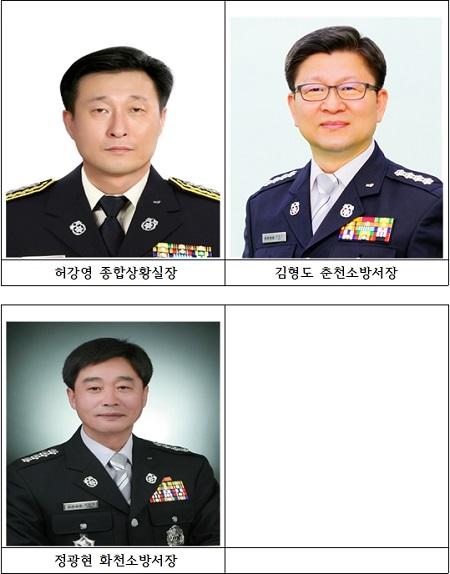 또한, 서장급 전보인사로 김형도 종합상황실장이 춘천소방서장으로, 정광현 춘천소방서장이 화천소방서장으로 자리를 옮겼다.