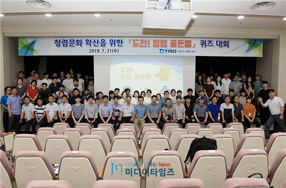 대구도시철도공사(사장 홍승활)는 지난 7월 31일(수) 본사 지하 강당에서 직원 100여명이 참석한 가운데 전사적 청렴의식 함양과 청렴문화 확산을 위해「도전! 청렴 골든벨」퀴즈대회를 개최했다고 밝혔다.
