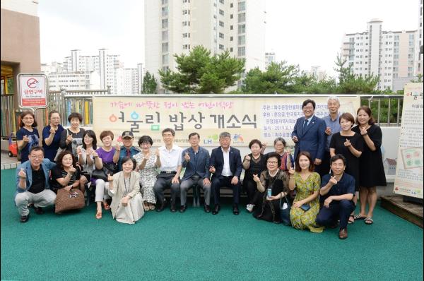 지난 1일 운정3동 한울마을 4단지에서 손배찬 시의장, 지역사회보장협의체, 한명희 LH 파주권주거복지지사장, 연진흠 파주시자원봉사센터장, 한울마을 4단지 관리소장, 어울림밥상 봉사자 등 30여명이 참석한 가운데 어울림밥상 개소식 및 현판식이 열렸다.