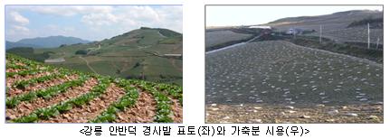 농촌진흥청은 토양유실예측공식을 이용해 7∼30%의 경사지에서 콩을 재배 했을 때와 감자, 배추를 재배 했을 때 유실되는 흙의 양을 1년간 비교했다.