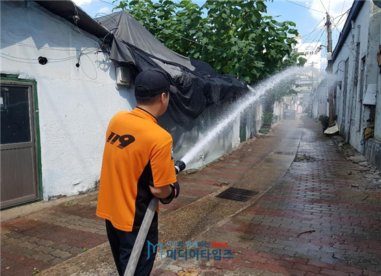 또한 대구지역 쪽방촌 일대에도 살수 작업을 실시해 독거노인 등 취약계층이 무더위를 극복할 수 있게 소방서비스를 제공하고 있고,