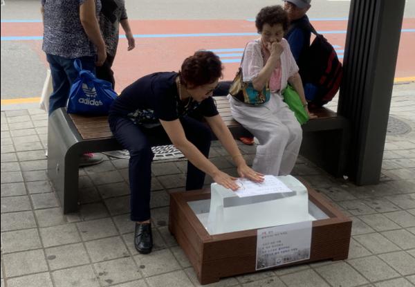 최근 무더위가 기승을 부리고 있는 가운데 성남시내 32곳 버스 정류장에 얼음이 등장했다.