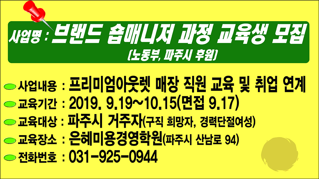 파주시는 파주지역 경력단절 여성구직자 등을 대상으로 ‘2060 브랜드 숍매니저 과정’ 제6기 교육생을 모집한다.