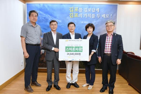 이날 기부식에는 스마트파워 김종국 대표이사와 정하영 김포시장, 송천영 대곶면장, 심상연 김포복지재단 이사장 및 관계자들이 참석했다.