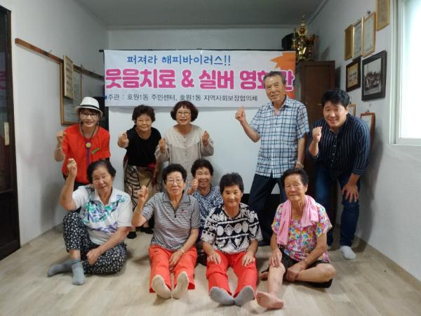 호원1동 지역사회보장협의체와 호원1동 주민센터는 지난 7월 31일 다락원경로당에서 10명의 어르신들을 대상으로 웃음치료와 실버영화관을 진행했다.